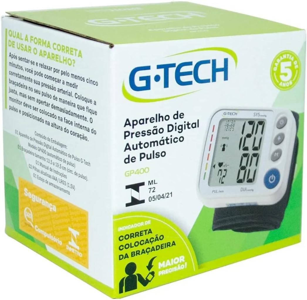 O Aparelho de pressão digital de pulso G-Tech GP400 apresenta as mais modernas tecnologias em medição da pressão arterial, tornando o ato muito mais rápido, fácil e seguro, aumentando o sucesso no seu tratamento. A Linha G-Tech Home de aparelhos de pressão digitais permite a monitorização residencial da pressão arterial, extremamente importante no controle da hipertensão e outras doenças do coração, sempre com toda a segurando e praticidade de uso que você já conhece e confia dos produtos G-Tech ! ATENÇÃO ! As imagens do produto são meramente ilustrativas. As características do produto, como peso, cor, forma ou embalagem, devem ser confirmadas na descrição do produto.